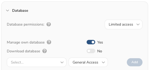 - Select Save. A policy with Download permission allows a user to download databases to which they have access.