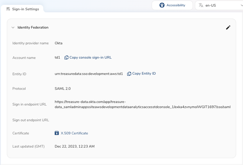 Specify and configure your IdP. When federated Identity is implemented, account users who currently sign-in to TD Console using Google SSO are immediately affected.