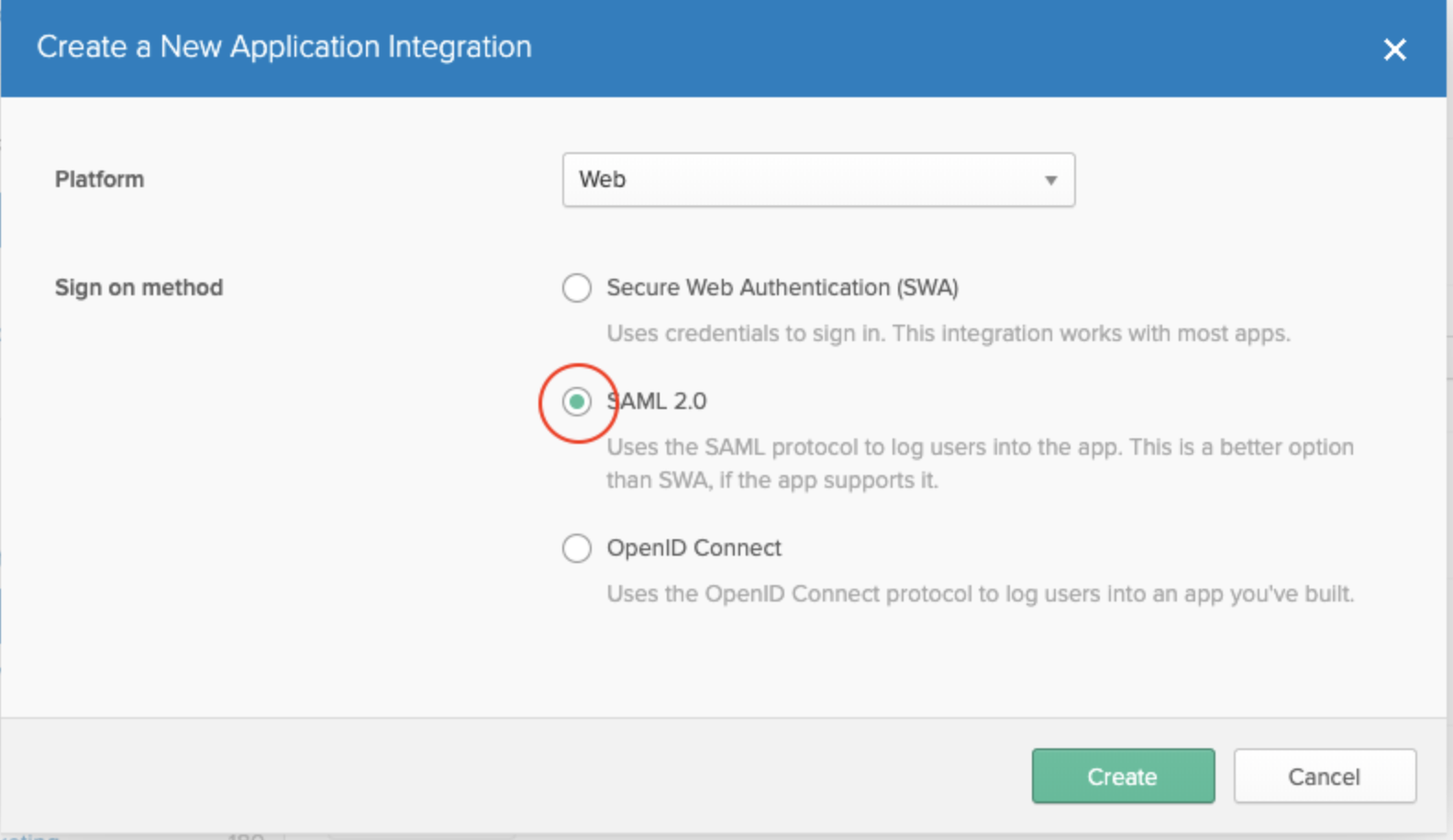 - After a new SSO-configured account has been set up for you by your account representative, create and set up a new application in Okta.