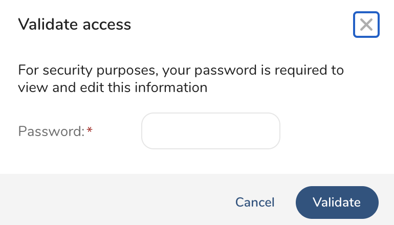- Validate your access by typing in your password.