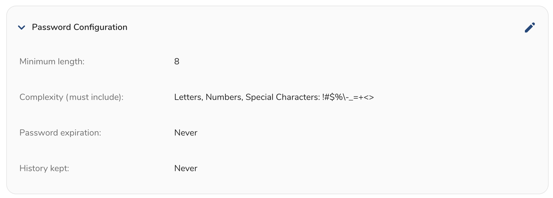 - Select the edit pen in Password Configuration.