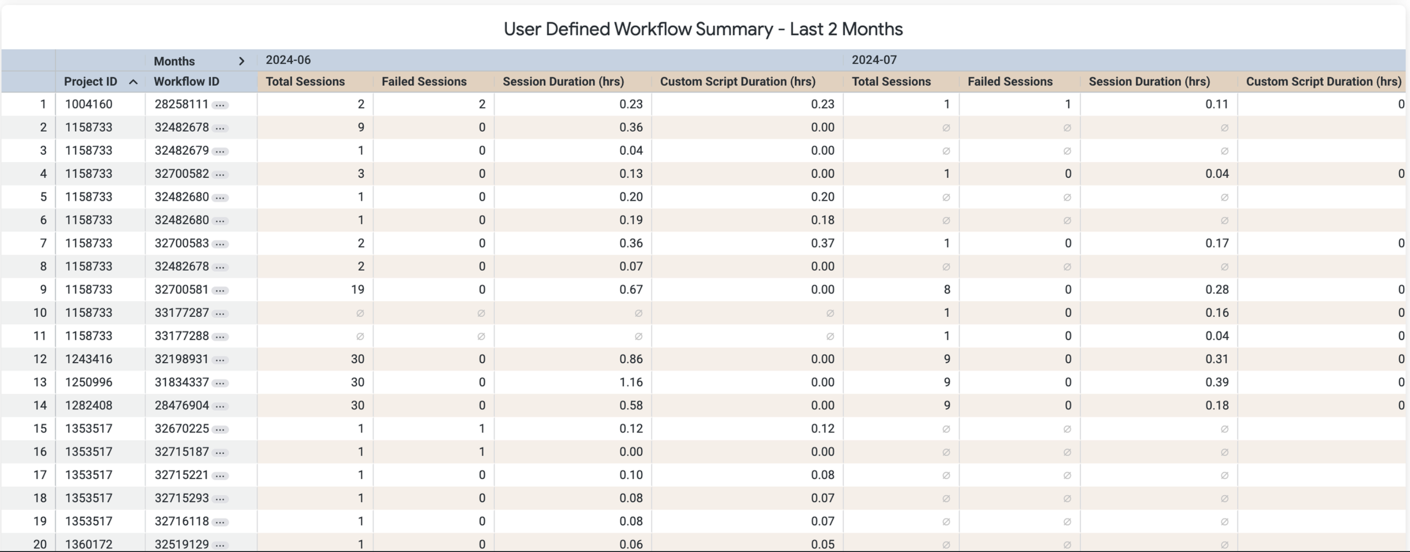 The final chart reveals a summary of user-defined workflows for a two-month span.