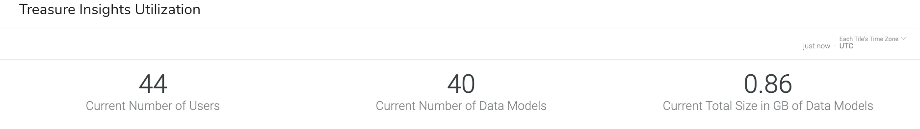 The Treasure Insights Utilization dashboard contains a snapshot of your Treasure Insights utilization.