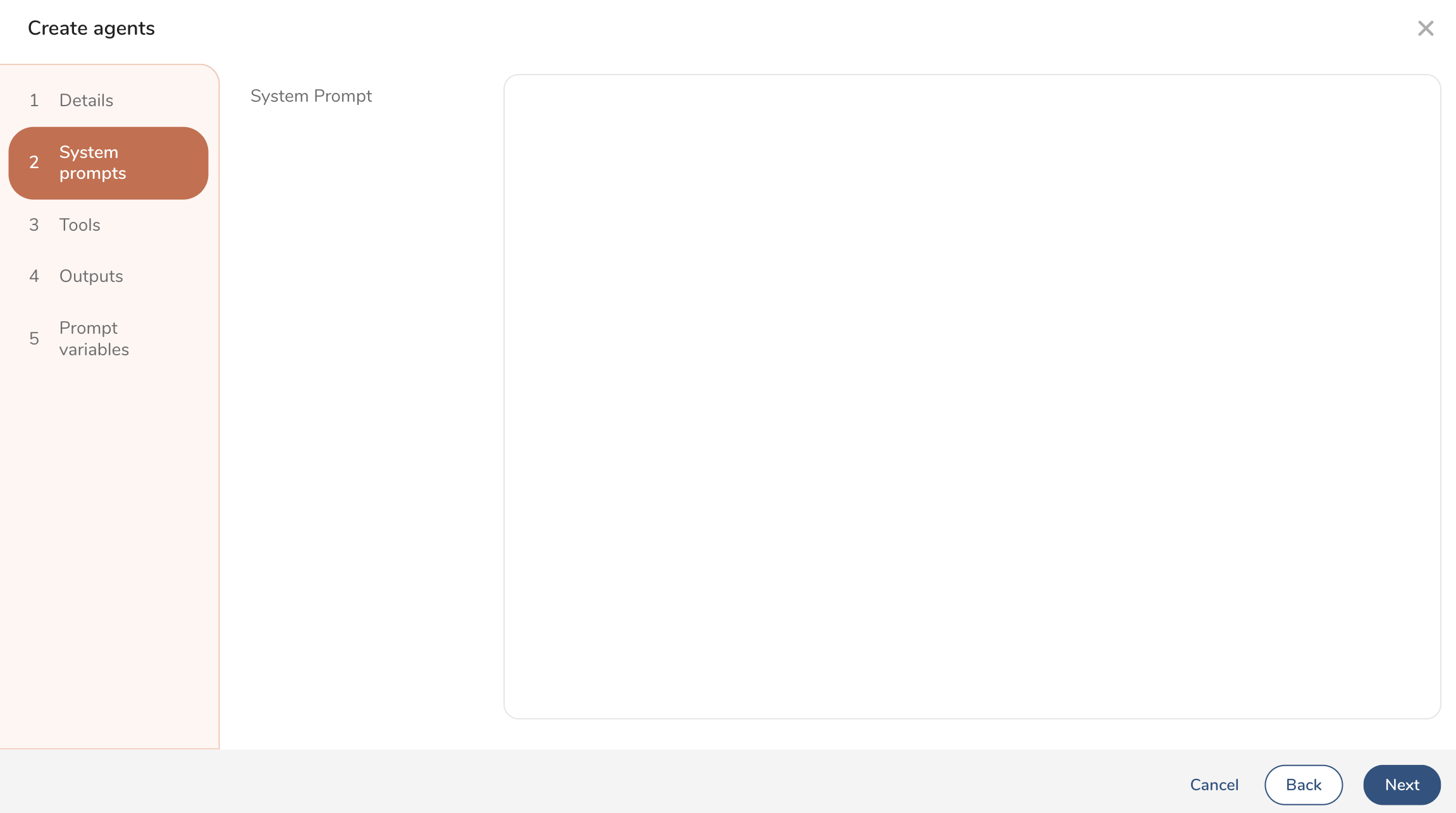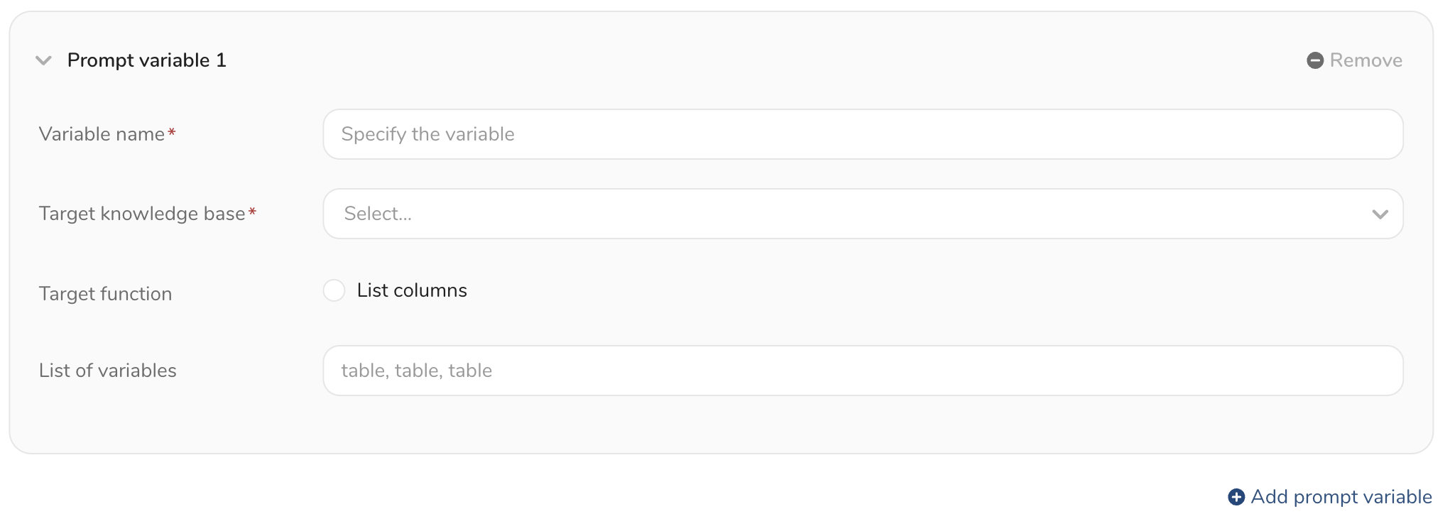| Variable Name | Enter a unique name. This name is referred in the system prompt |