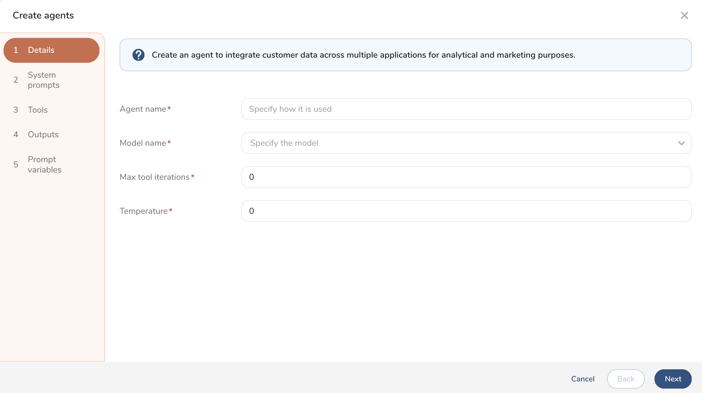 | Max tool iterations | Tool iterations repeatedly refine and improve a tool by going through development cycles. You can choose the maximum number of tool iterations allowed per agent. The default is 0.Learn more about adding tools. |
