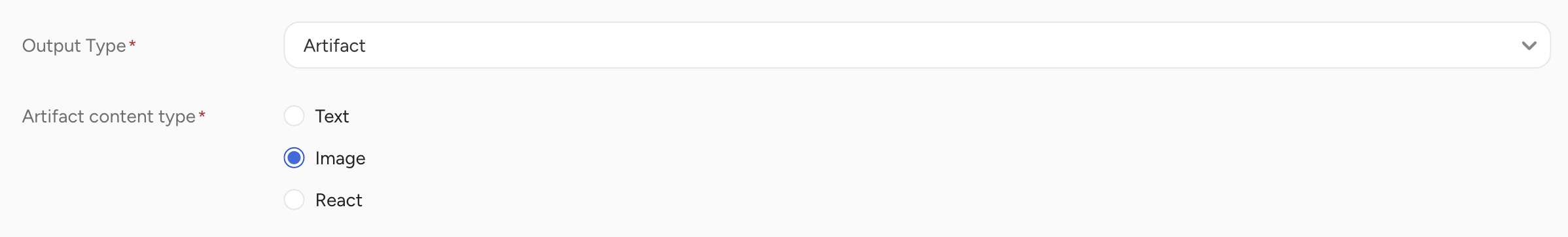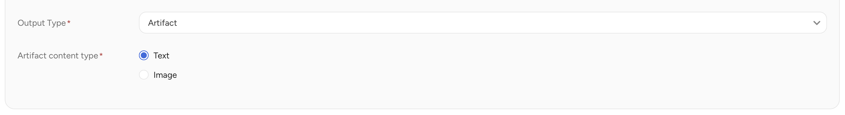 | Artifact | Persist the output as an individual object from chat conversations. The form-type interface supports only artifact outputs.