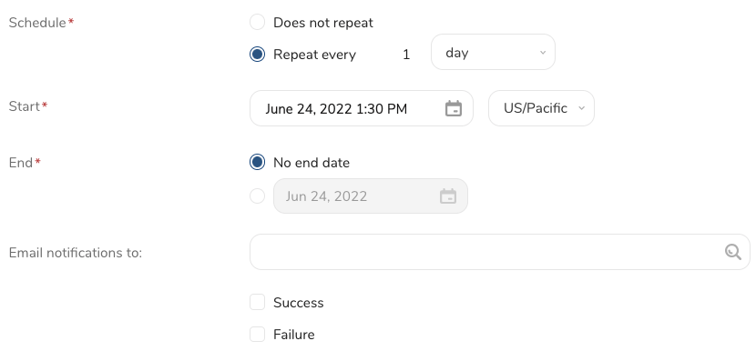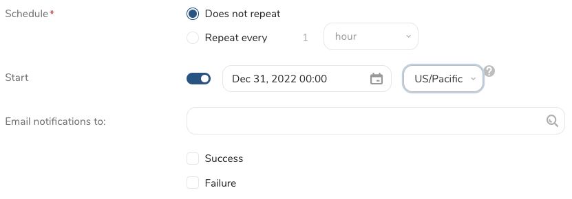 Treasure Data analyzes the time zone and the current time of the user creating the activation. For example, let's assume it's June 24, 2022, at 3:20 PM in the US/Pacific time zone. When you create an hourly activation using the US/Pacific time zone, Treasure Data automatically selects the next available hour to start the activation, 4:00 PM. You can also change the minutes after the hour.