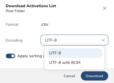 You can download activations to a CSV file.
