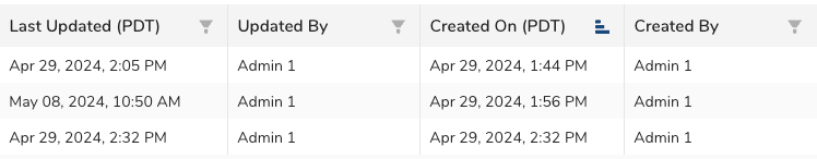 | Created On (your time zone) | The date/time when the activation was first saved, shown in your local time zone. | Sorting |