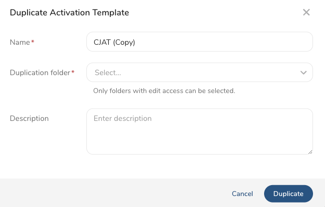 | Duplication folder | Select a single folder from the drop-down list. Only folders in the parent segment that have edit access will display. |