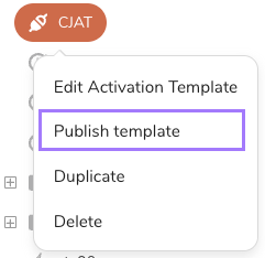 - Right-click the activation template and select Publish template. Alternately, select the ellipses menu (...) on the top right and select Publish template.