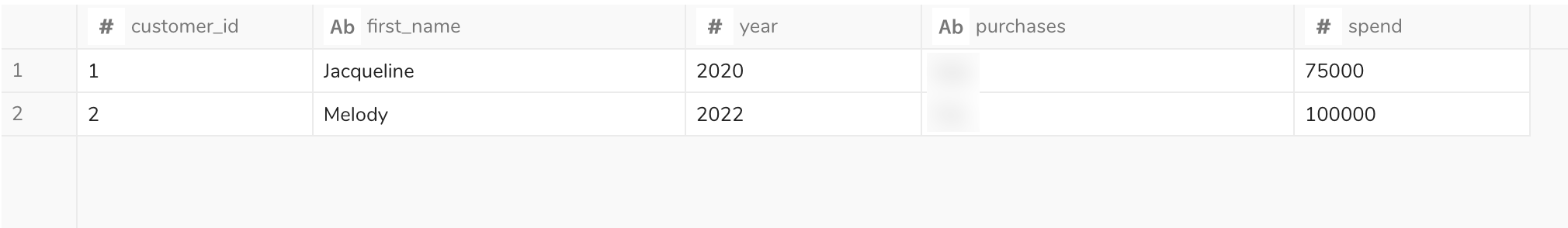 Consider the following source table sample with attribute and behavior configurations as follows: