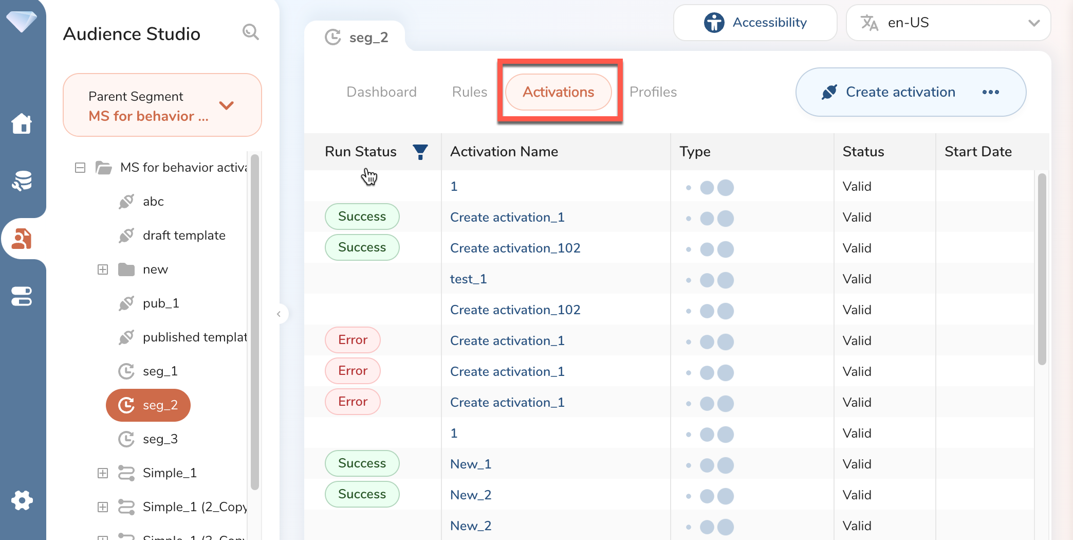 Behavior Activation must be enabled at a Parent (Master) Segment level.