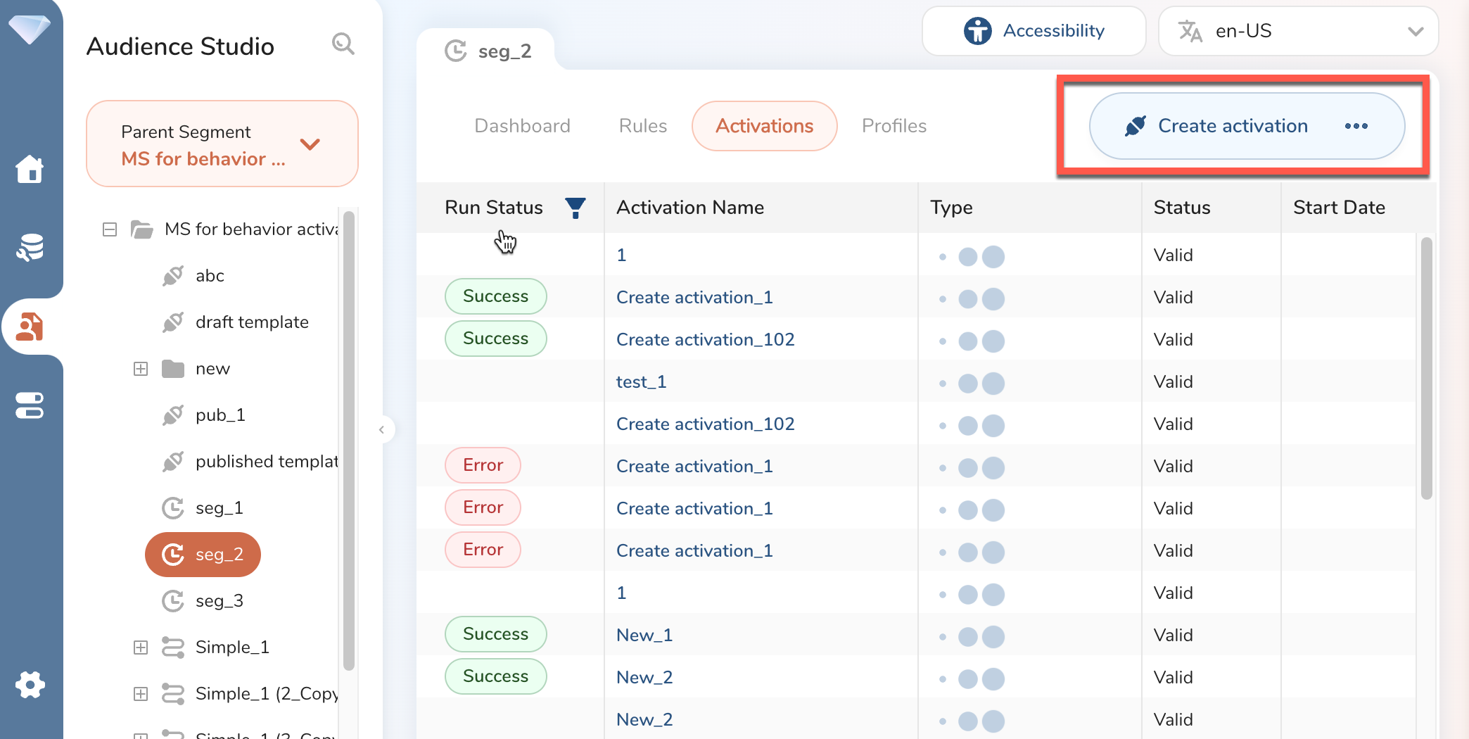 You must select and use the behavior field in the segment rule, if you want to activate it. If you do not use a behavior field, it cannot be activated.