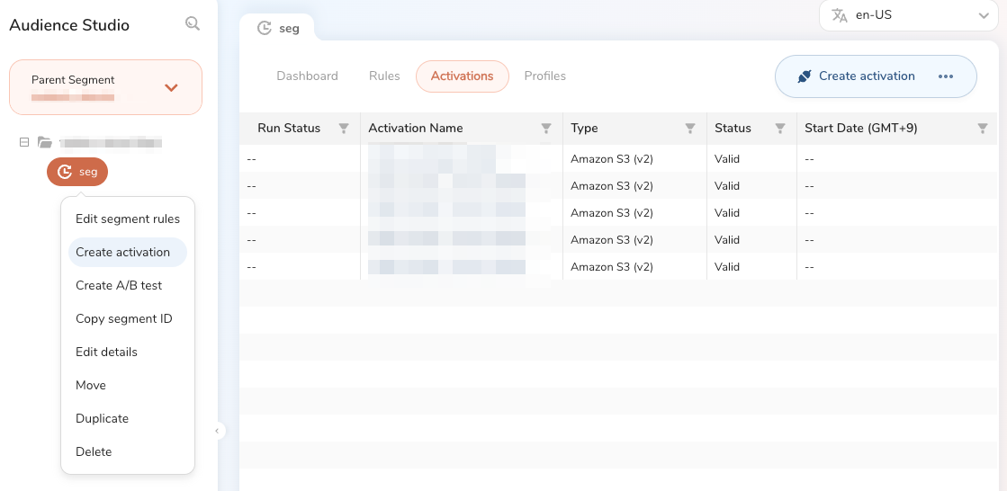 Marketers who want to activate segments to external platforms without having to understand all of the technical aspects of the parent segments can use the Copy activation from feature to use existing activations to activate any segments for which they have permissions. This feature prevents the need to configure new activations for every segment, providing a higher level of efficiency and allowing users to complete activation tasks more easily.