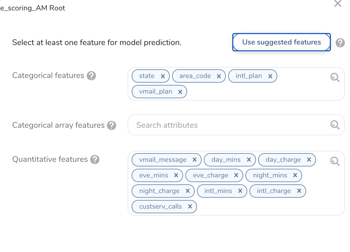 Treasure Data suggests highly relevant features (predictors) derived from attributes: