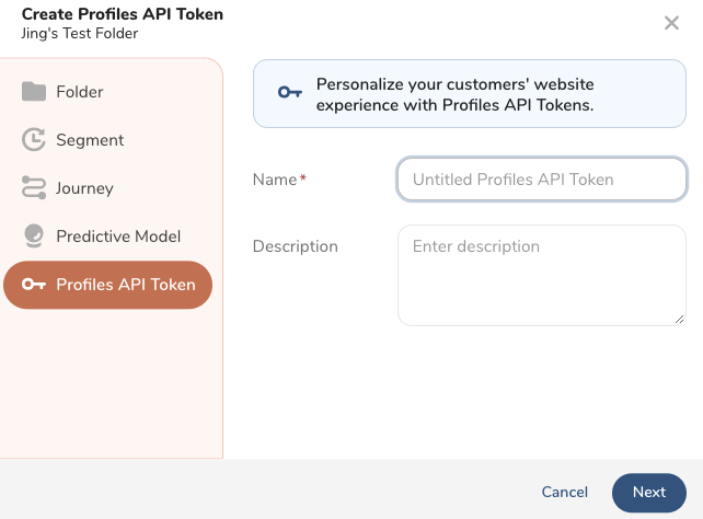 - Navigate to Audience Studio > Folder > Profiles API Token.