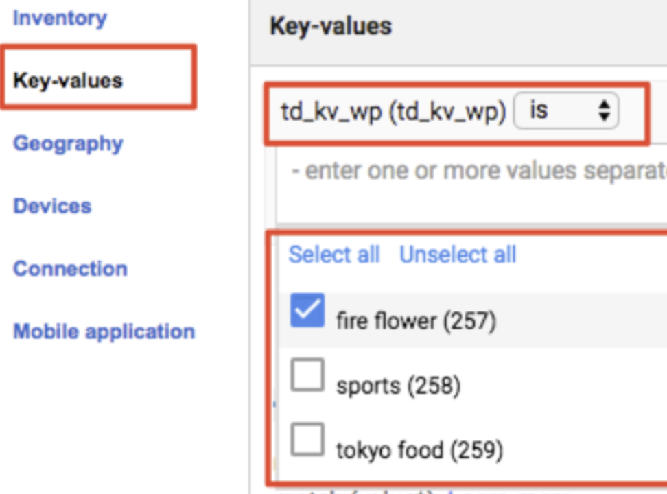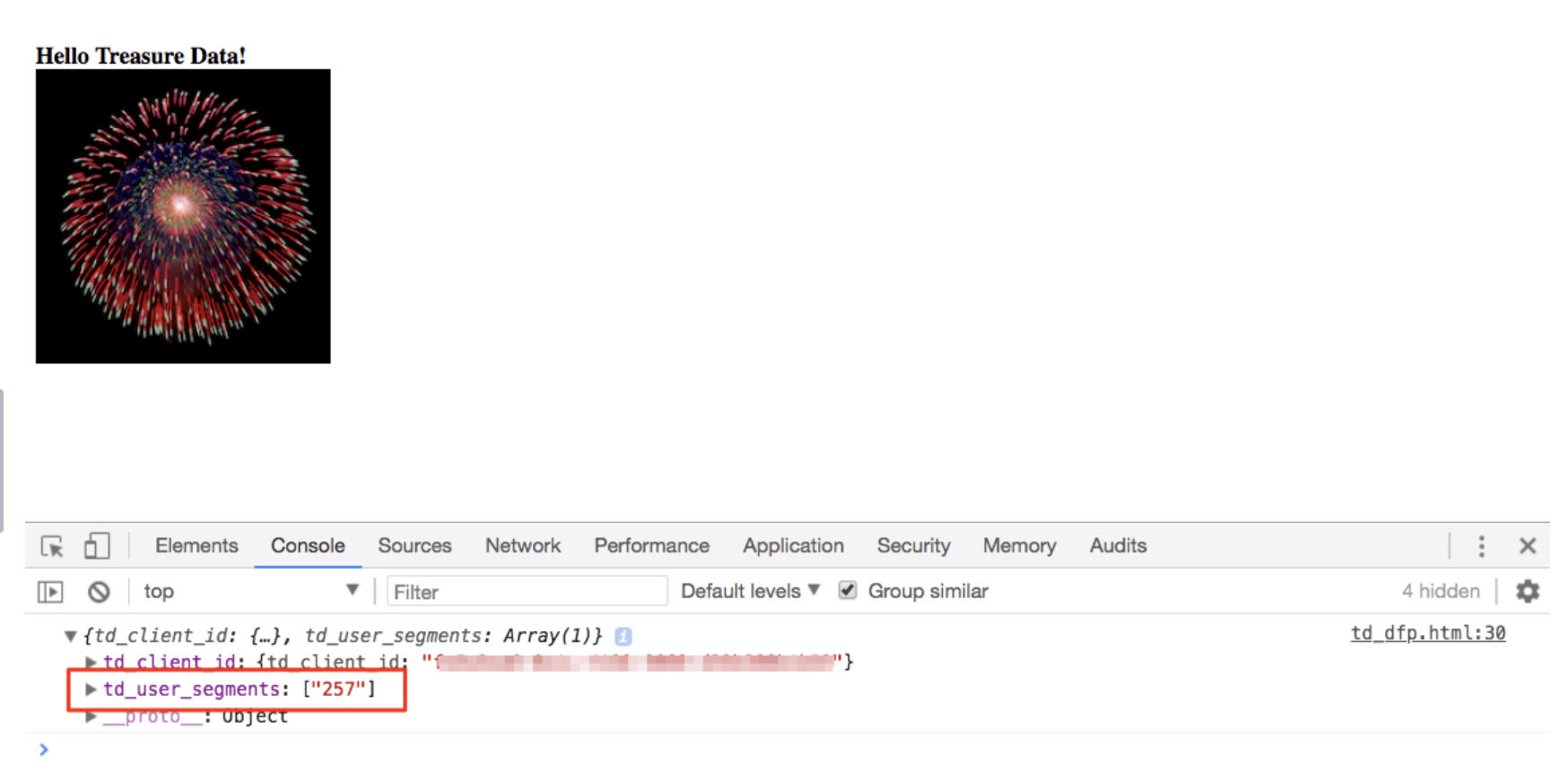 - Call googletag.pubads().setTargeting() function to pass Treasure Data’s segment IDs to Google DFP.