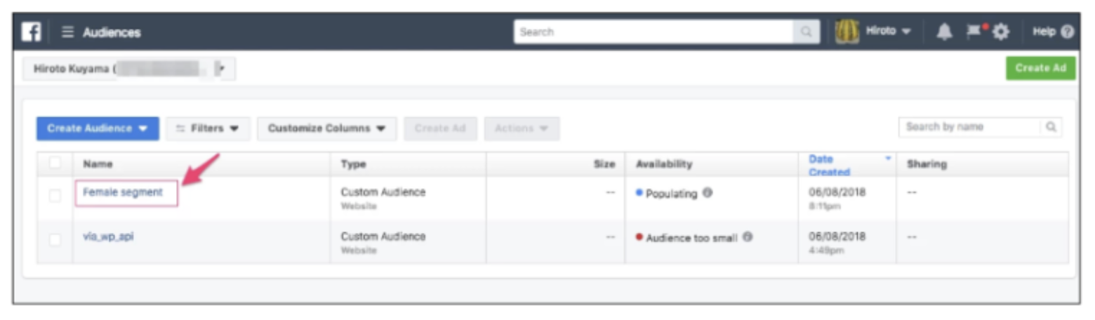 - Set your custom audience name.