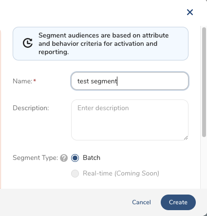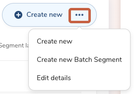 - Select Create New , name your segment, and select a Segment Type of Batch. Select Create.