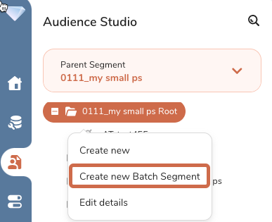 - Right-click the parent segment and select Create new Batch Segment. Add segment rules and optionally select Save.