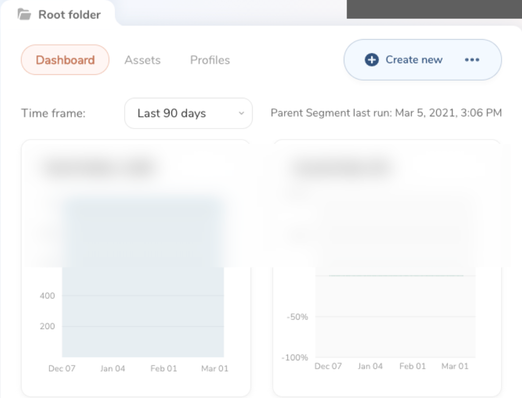 The Folder Dashboard provides a single pane for marketing professionals to quickly analyze total profiles and growth rates and compare segment profiles. For detailed information, see Folder Dashboard Overview.