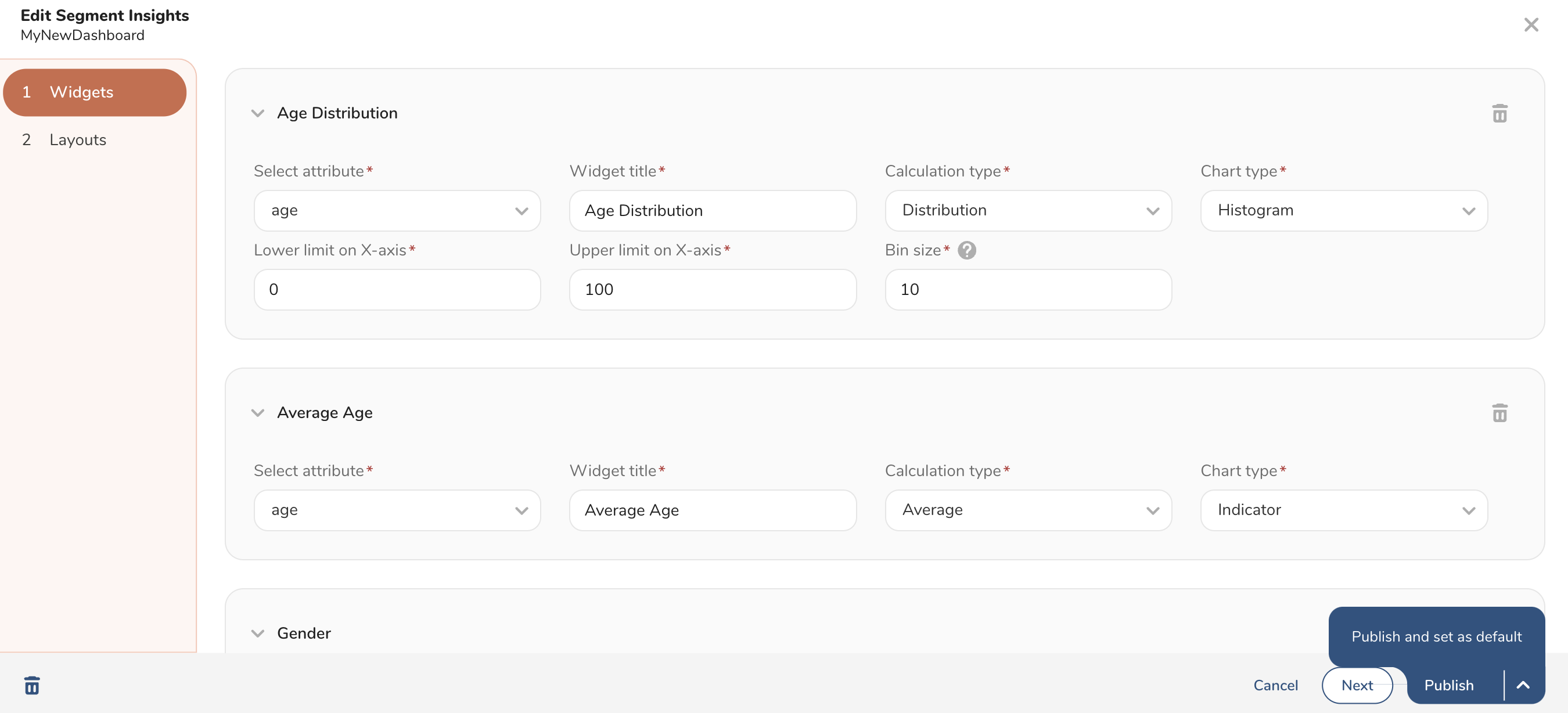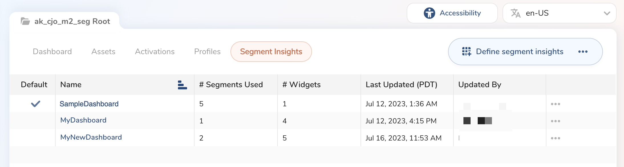 Select the dashboard name or the three dots to the right of the dashboard and select Edit segment insights.