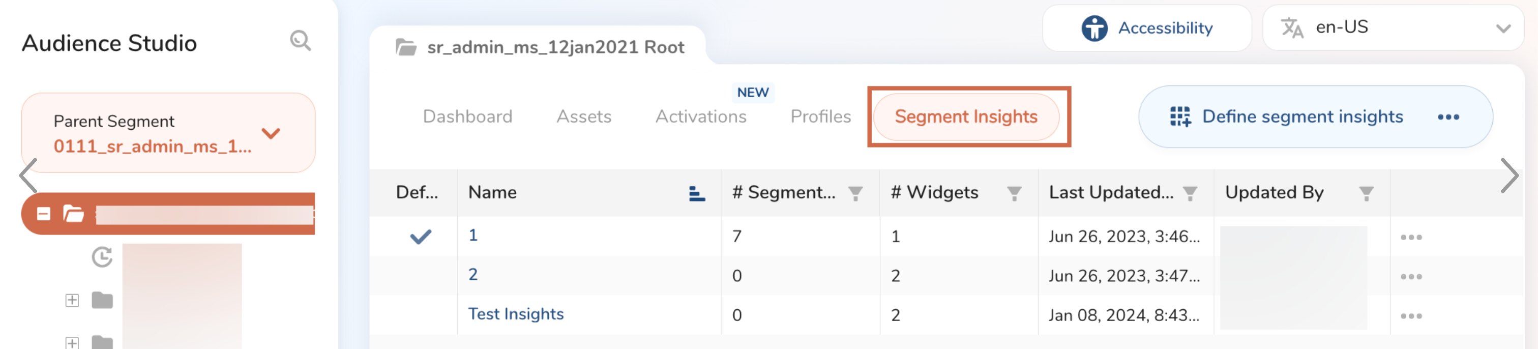 The Segment Insights Dashboard allows you to visualize the metrics of your market segments while you're building out the segment rules. With the Segment Insights Dashboard, you can view and (with permission) modify segment definitions.