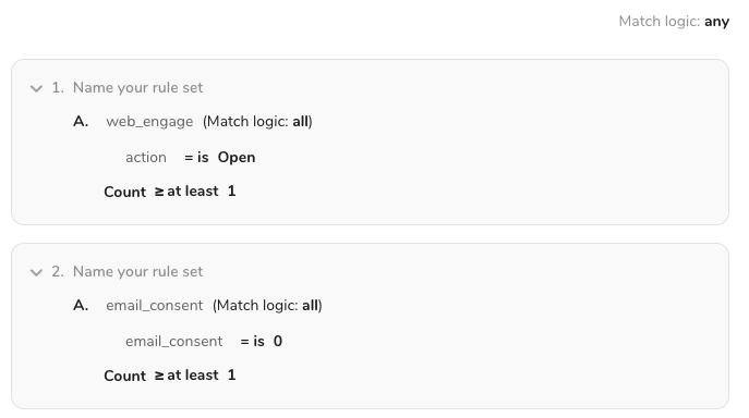 The following example demonstrates how the activated behavior data will work when using match logic ADVANCED.