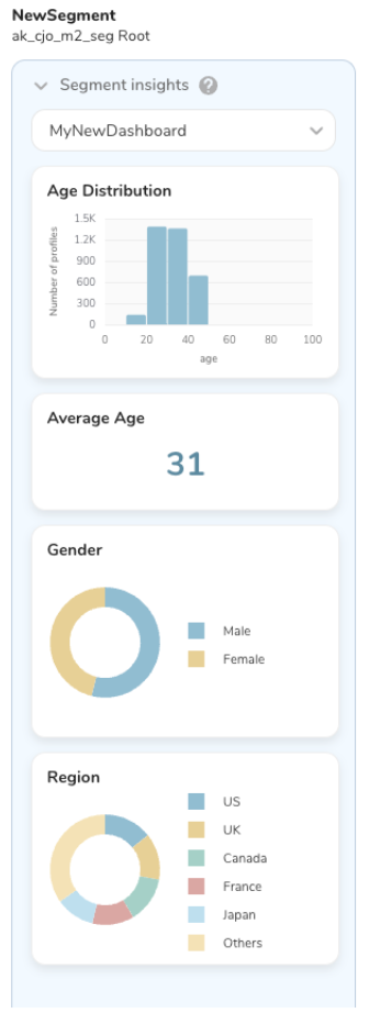 Visualizing metrics while building segment rules naturally helps build better segments. The Segment Insights Dashboard allows users to view metrics of particular attributes including distribution, sum, and average.