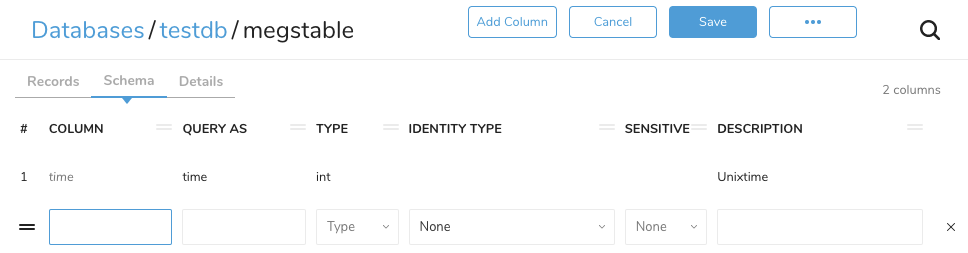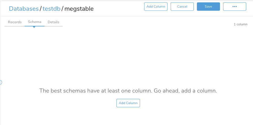Optionally, to continue customizing the schema and metadata, select Add Column.