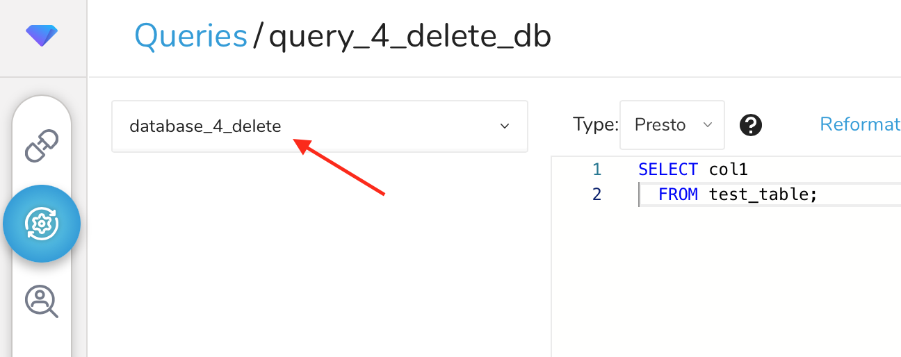 $ td db:delete test_db Schedule setting of Saved Queries is removed if the database for them is deleted. In addition, if you do not have permission to all databases, you will not be able to see these queries.