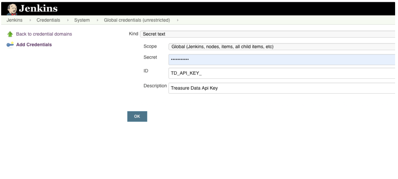TD_API_KEYinto the Secret field and the name you would like to use for this credential in the ID field..Select Save variables.