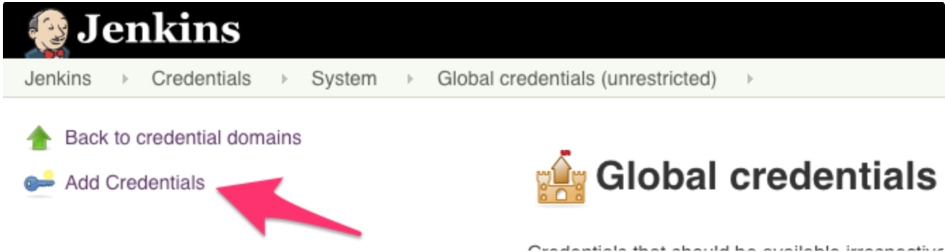 From the main center menu select Global credentials (unrestricted).