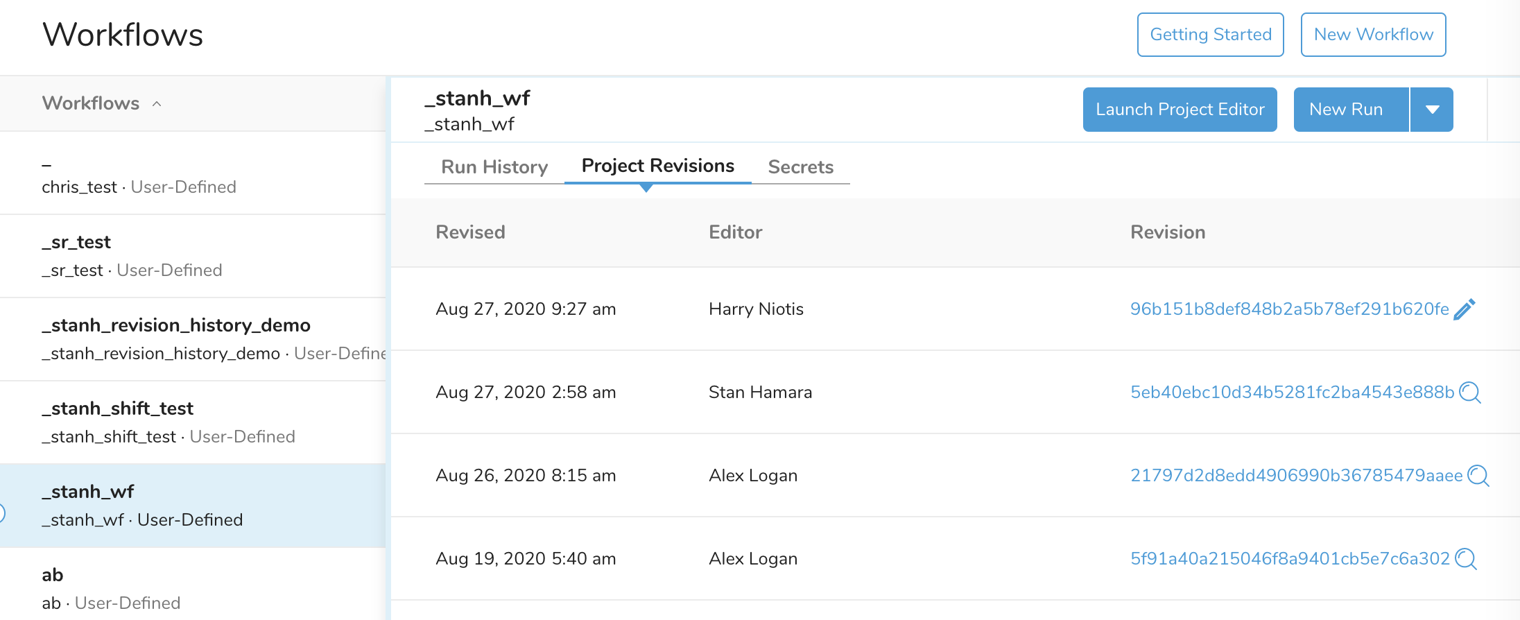 You can use the unique revision ID assigned to each workflow instance to revert to a previously saved workflow using TD Console or the TD Toolbelt. A revision ID is created whenever you edit and then save a workflow.