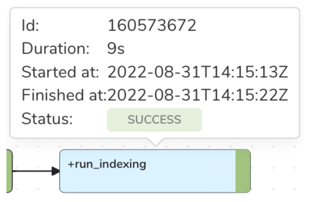 | Task Status | The color of the task node denotes the status of the task: • Green - successful • Yellow - killed • Grey - blocked • Red - error | ![]() |