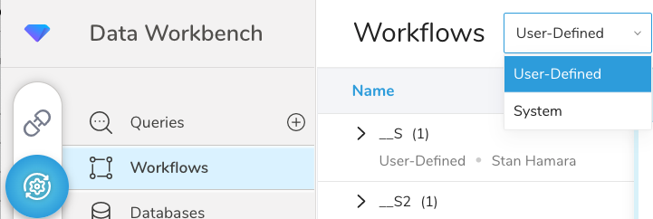 Use the workflow selector at the top of the Workflows page, to choose the type of workflows you want to view: