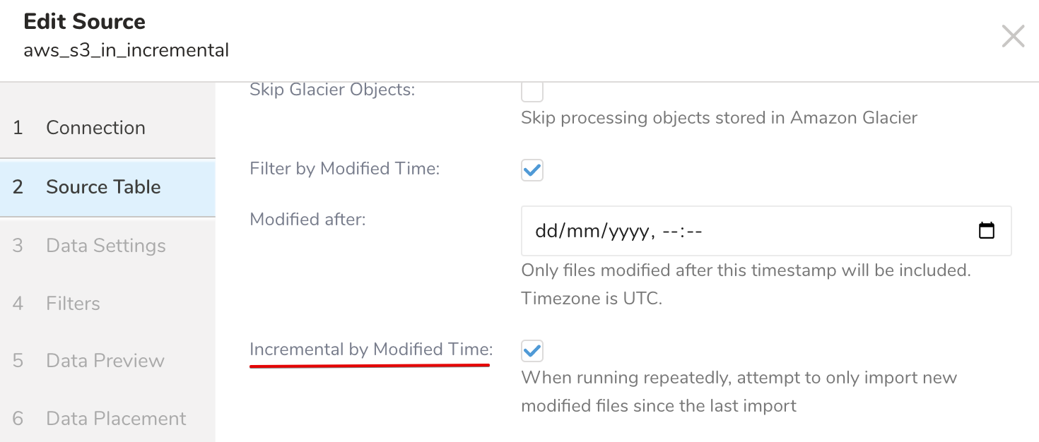 Create a Source from the Authentication created above and select the incremental loading feature