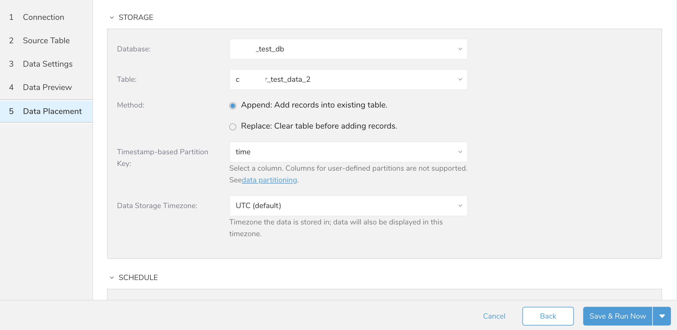 Data collection, which is also referred to as data import, can be scheduled as part of defining a new data source or at a later time by editing your data source.