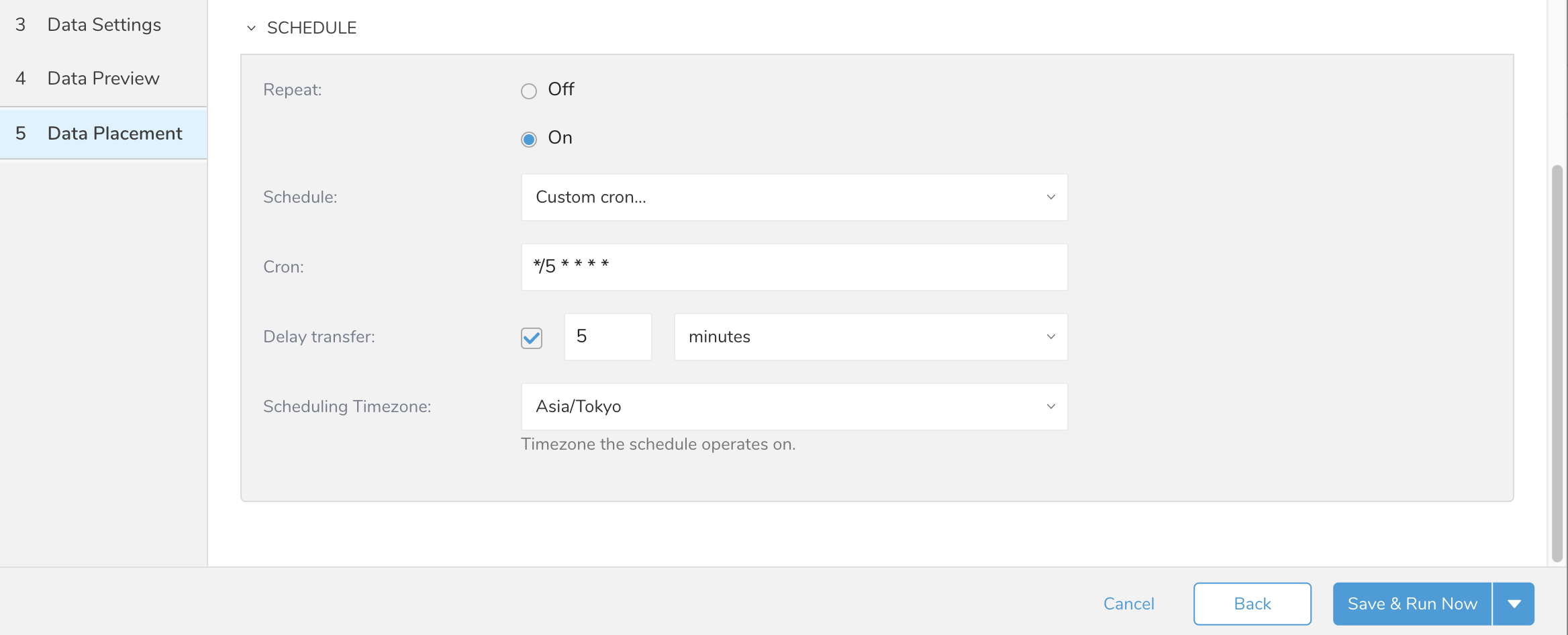 - Cron: See Cron Schedule Values - Only available if Custom cron is selected for the Schedule field.