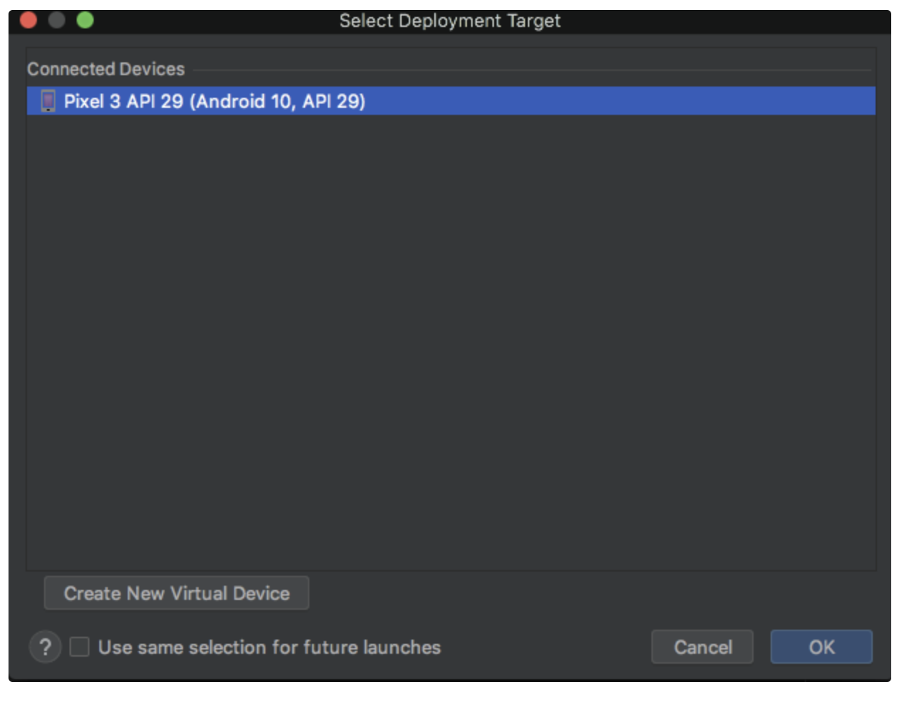 Select the virtual device created in the preceding step.