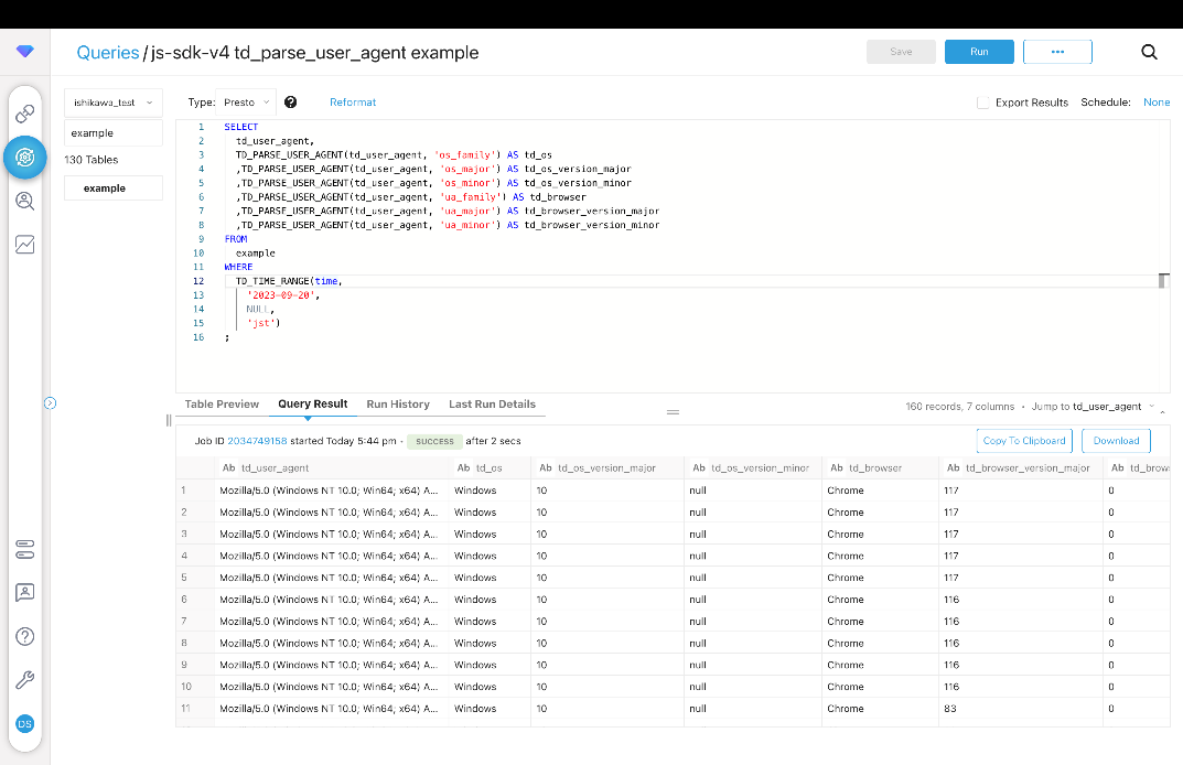 }); - (Optional) Write SQL to get values for td_browser, td_browser_version,td_os, and td_os_version from td_user_agent.