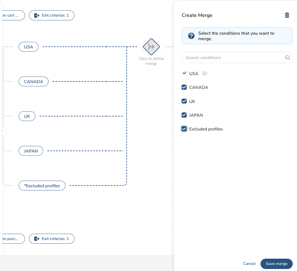 - Select the remaining four conditions (optionally, reorder the conditions) and select Save merge.