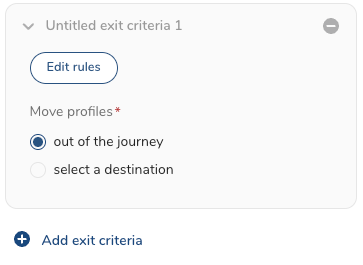 - To complete your exit criteria, enter a name and identify how to move profiles out of the journey.