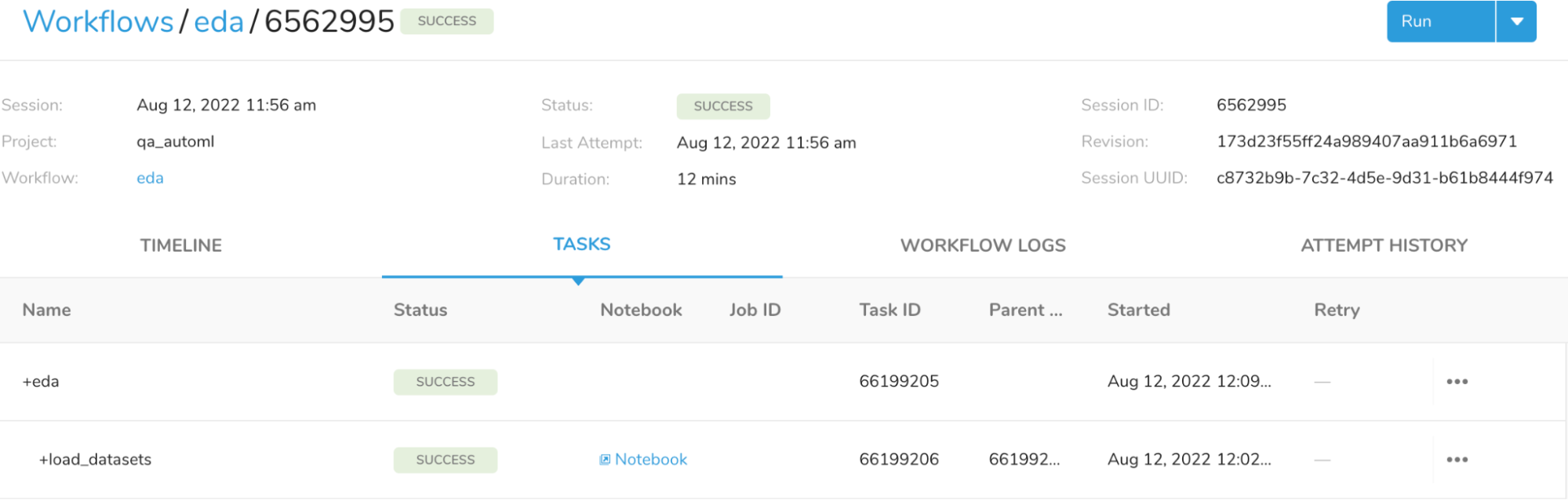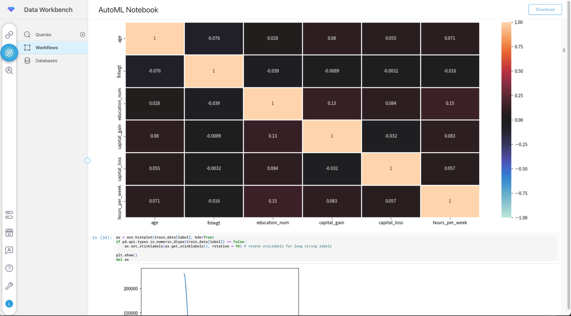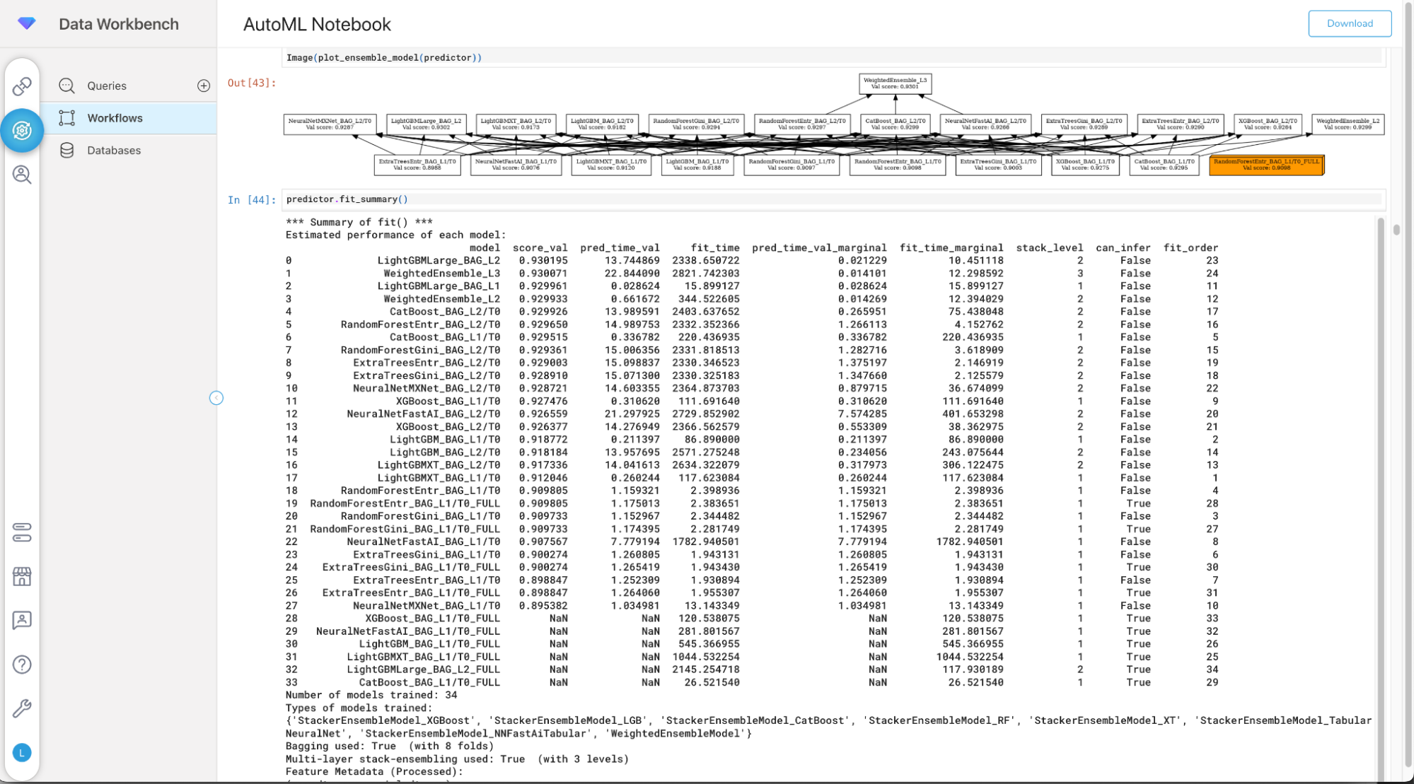 When an AutoML workflow has successfully completed, you can view the associated iPython notebook that has been generated.