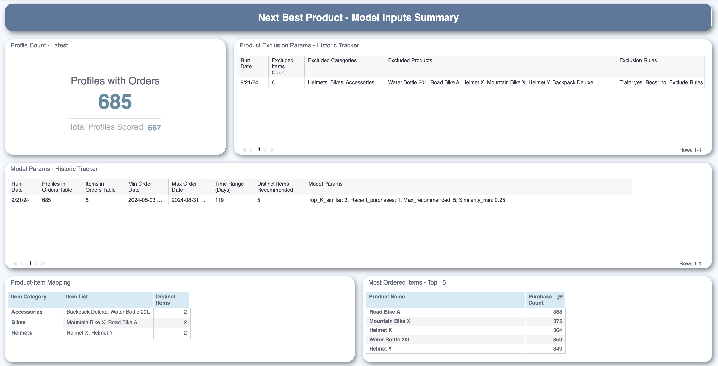 Identifying and offering the most suitable products or services for a prospect or existing customer profile based on their preferences and behaviors, is a common marketing strategy for effective user acquisition, engagement, upselling, and retention. Next Best Product (NBP) predicts a list of recommended entities, which can be products or services, or content for a user's profile. These recommendations can be used by marketers for segment generation, personalization, journey decisioning, and content marketing. Implementing an effective NBP can help lead to higher customer satisfaction, increased sales revenue, improved customer loyalty, and overall enhanced marketing efficiency.