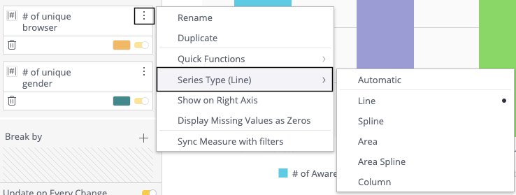 For example, you might want to combine a line chart with a column chart to visually convey the interaction of the data points. We'll start with the column chart.