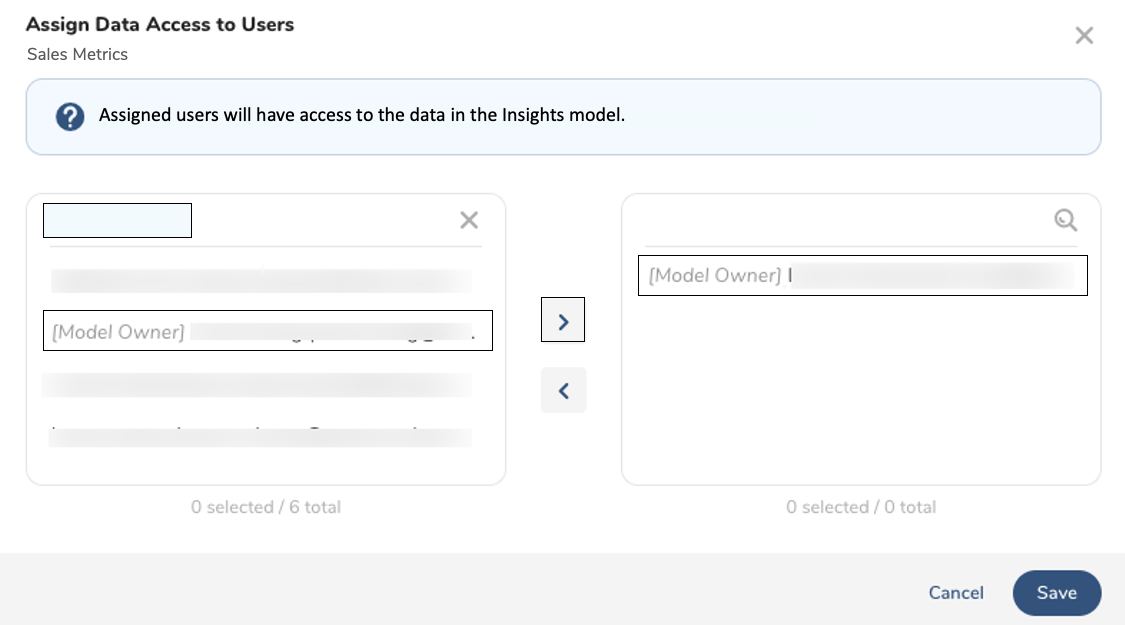 - Search for the user that created this Insights model. You must type in the user's name. You cannot search with "Model Owner".