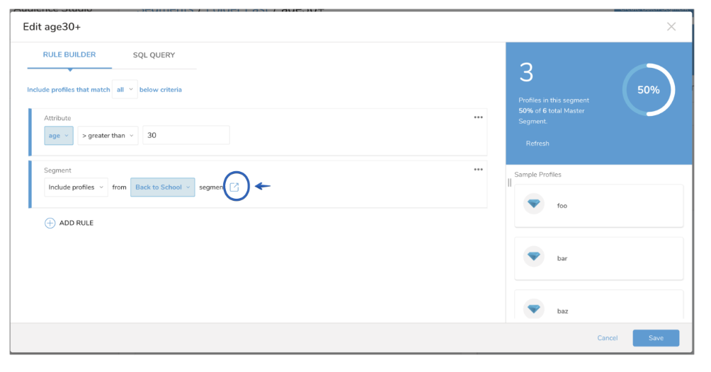 Segment Nav Link: allows you to click out to an existing segment within the segment rule editor. You can see the rules that are used by the nested segment.