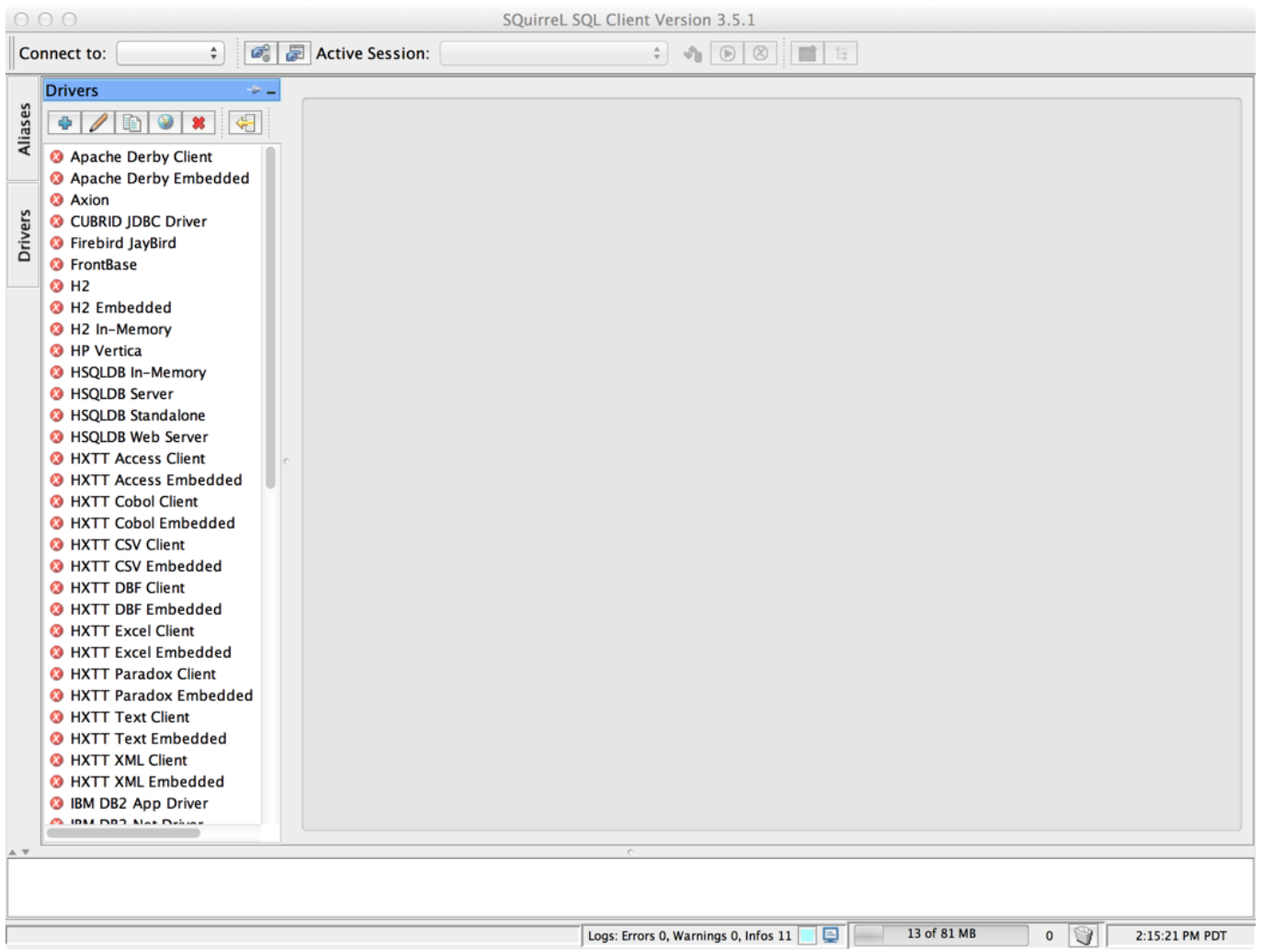 $ mv td-jdbc-0.2.10-jar-with-dependencies.jar /Applications/SQuirreLSQL.app/Contents/Resources/Java/lib/The target directory is $SQUIRREL_SQL_INSTALL_PATH/lib/ on Windows and Linux.